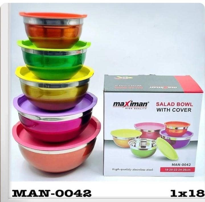 کلمات کلیدی سئو: ست کاسه استیل درب دار، لگن استیل رنگی، کاسه سالاد ماکسیمان، ظروف استیل دربدار، کاسه 5 تیکه، MAXIMAN MAN-0042، خرید لگن آشپزخانه استیل
