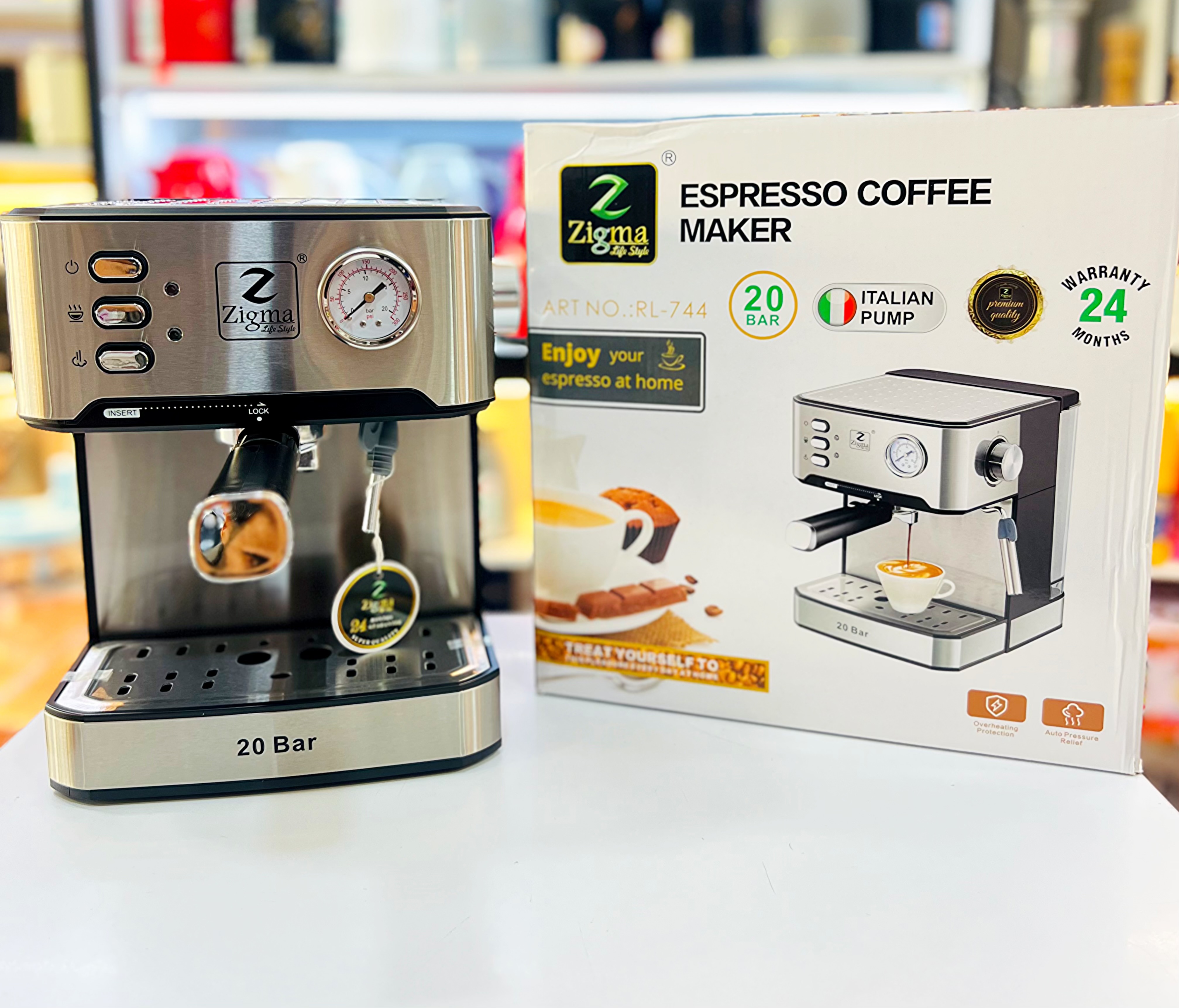اسپرسوساز زیگما RL-744، اسپرسوساز ۲۰ بار زیگما، قهوهساز خانگی زیگما RL744، اسپرسو ساز با نازل بخار، قهوهساز 1.6 لیتر زیگما.