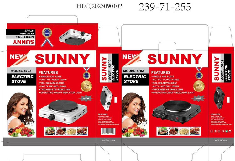 آشپزی آسان و سریع با اجاق برقی تک شعله SUNNY مدل 5702! این اجاق برقی جمعوجور و قدرتمند با توان 1500 وات و صفحه داغ (Hot Plate) با قطر 155 میلیمتر، همراه ایدهآل شما در منزل، محل کار، خوابگاه و سفر است.